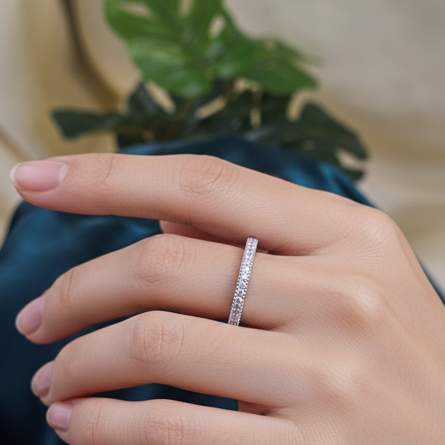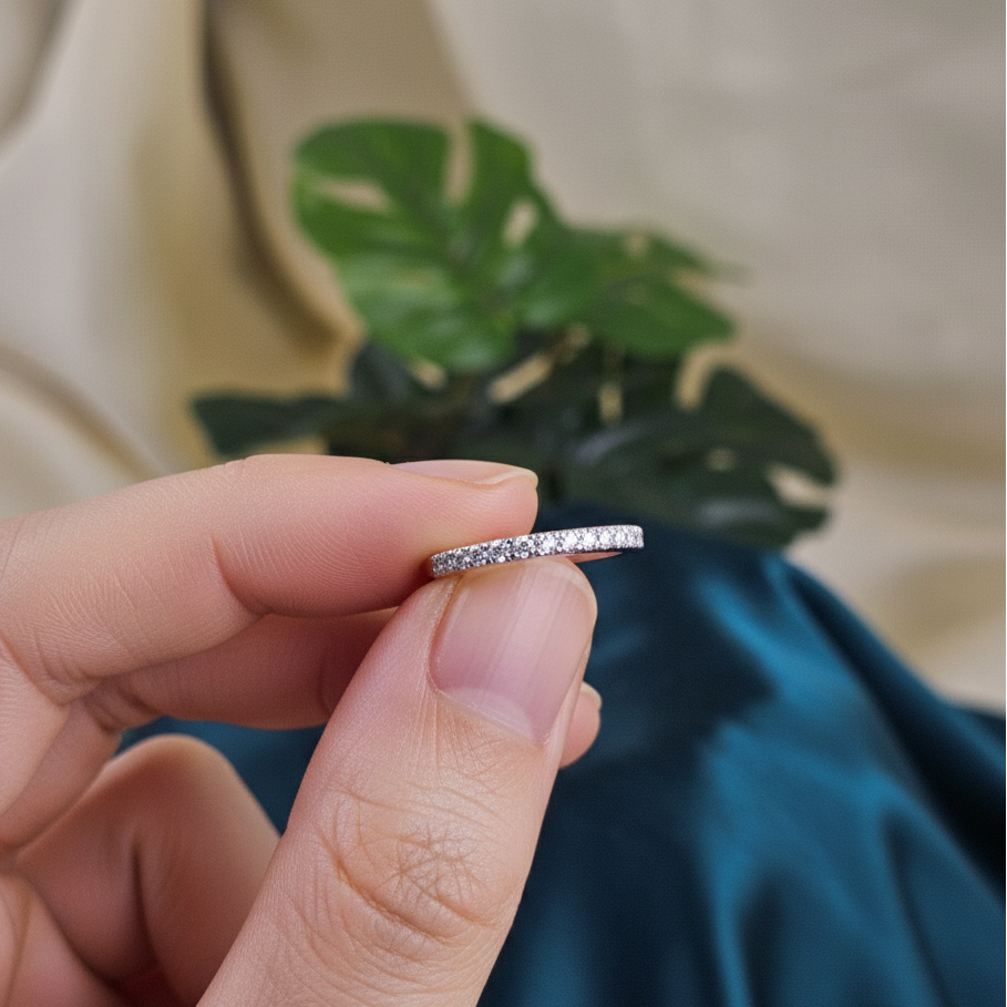 A delicate sterling silver band lined with radiant stones, a reminder that every moment has its shine. Minimal, modern, and made for everyday elegance.