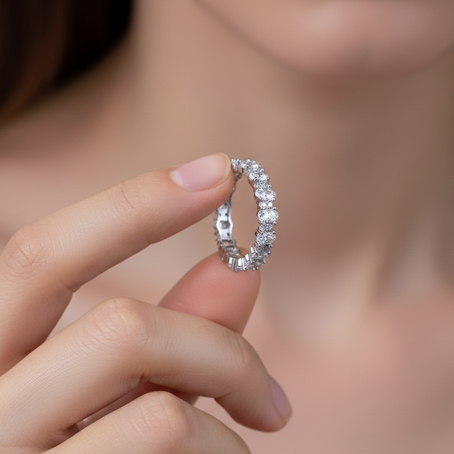 Step into your power with The Sovereign Oval. This isn't just a band; it's a statement of timeless luxury. Crafted from solid silver and featuring a continuous loop of oval stones, it’s the centerpiece your jewelry box has been waiting for. It’s giving Old Money aesthetic with a modern, sustainable twist. Wear the crown on your finger.