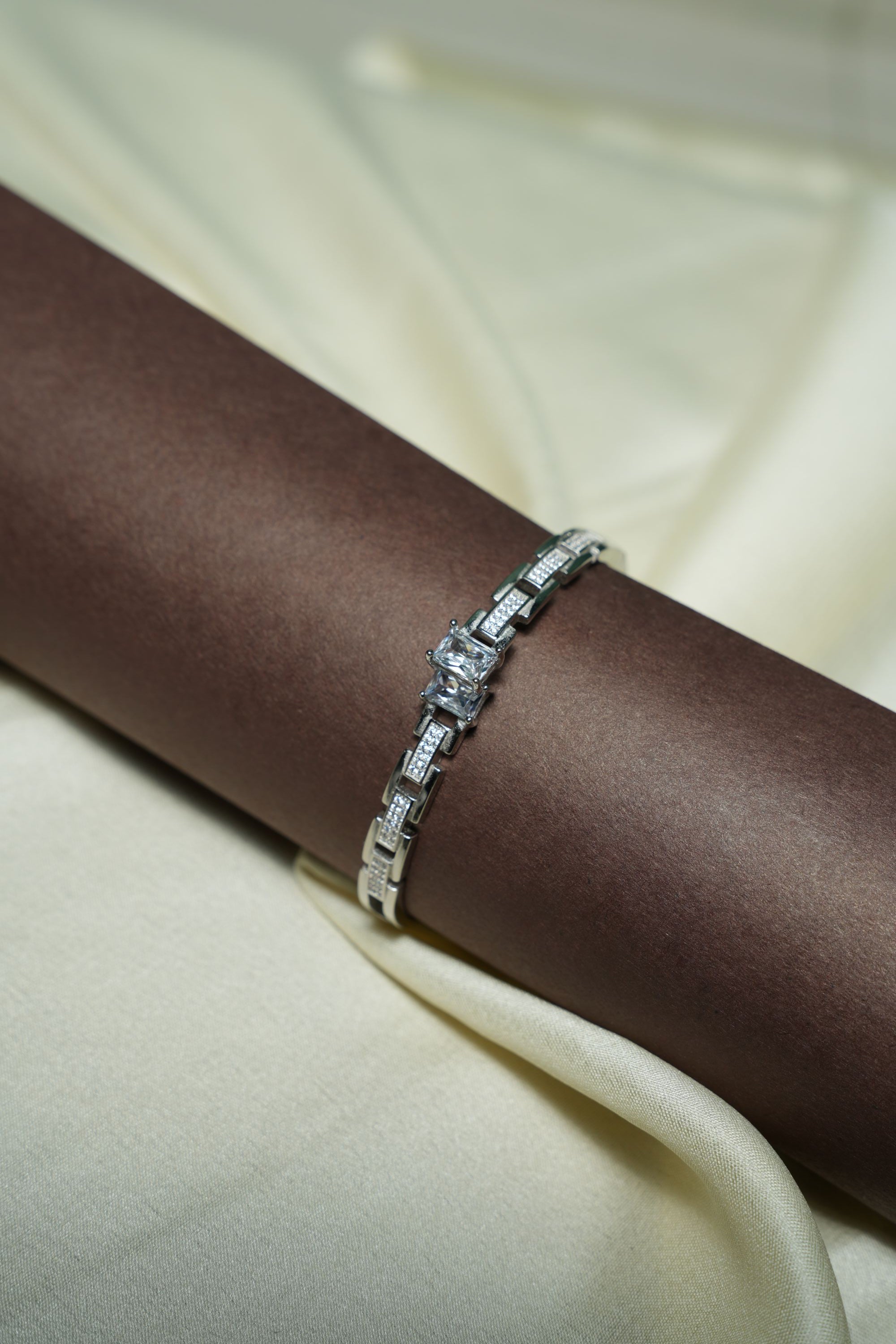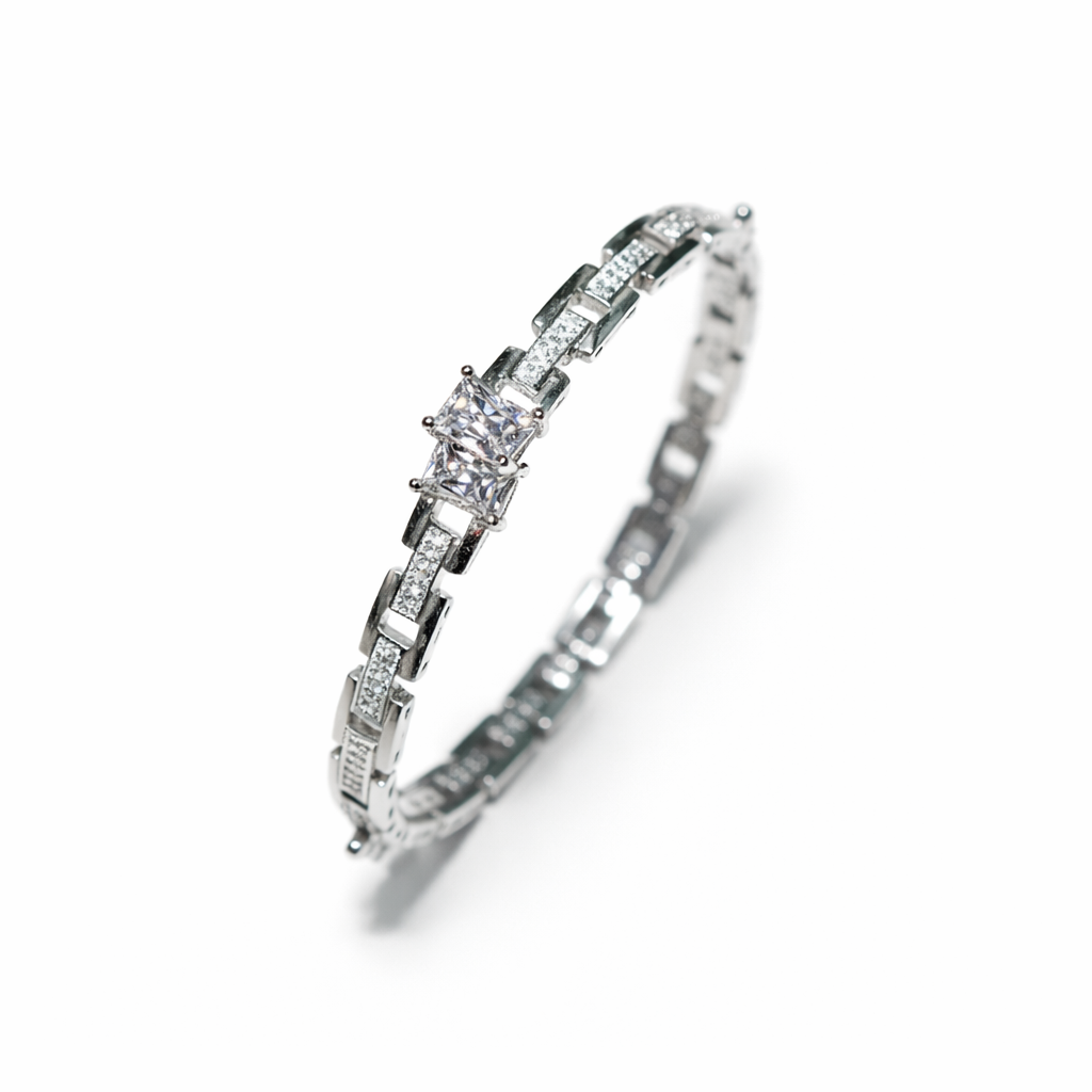 Redefine your wrist game with this architectural masterpiece. Featuring a bold, square-cut center stone and sleek geometric links, this piece blends industrial edge with quiet luxury. Designed for a gender-fluid aesthetic, it’s the ultimate high-shine statement for those who lead with style, not trends.
